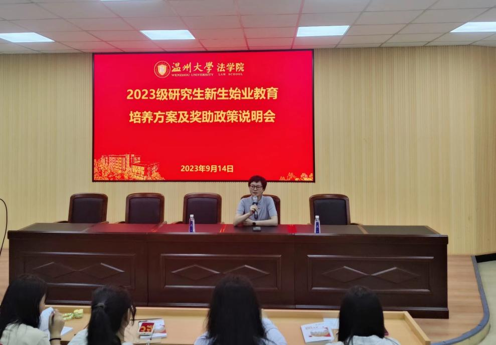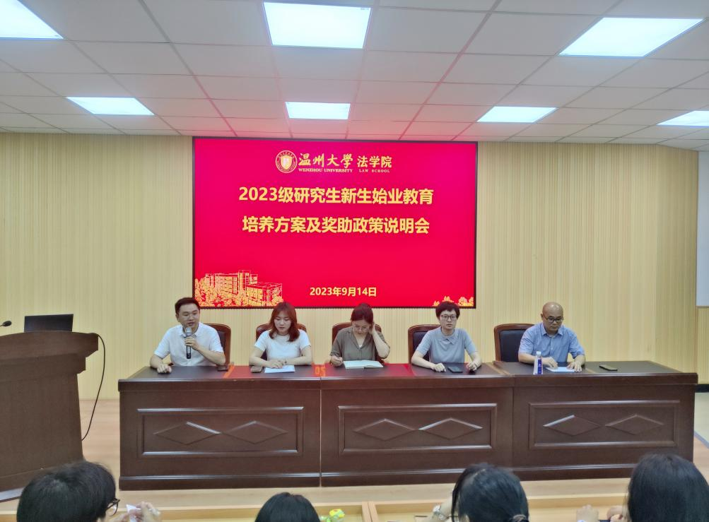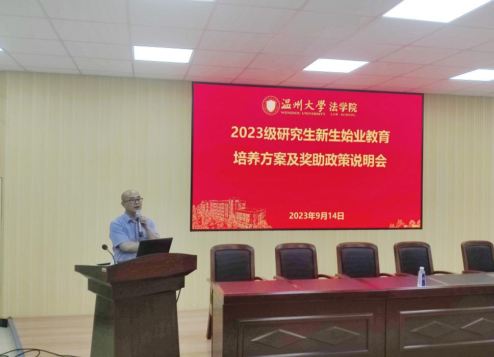 9月14日晚上,麻将胡了试玩(中国)官方网站 2023级硕士研究生始业教育培养方案及奖励政策说明会在301会议室举行。麻将胡了试玩 副院长周一颜、法律硕士点负责人肖磊、辅导员谢亭立、辅导员白昌科、教务科胡亚玲老师以及2023级全体硕士研究生参加会议,会议由白昌科老师主持。