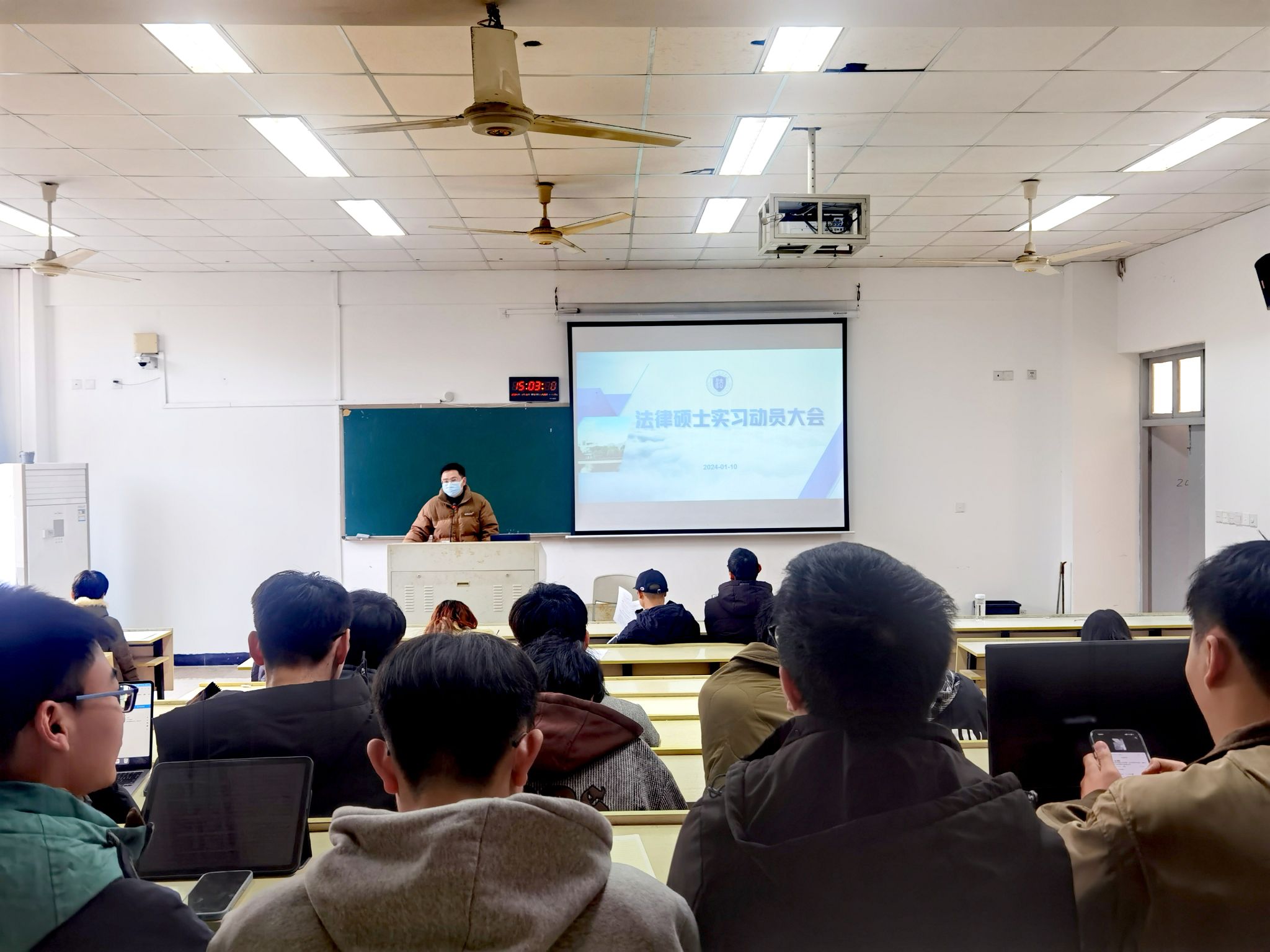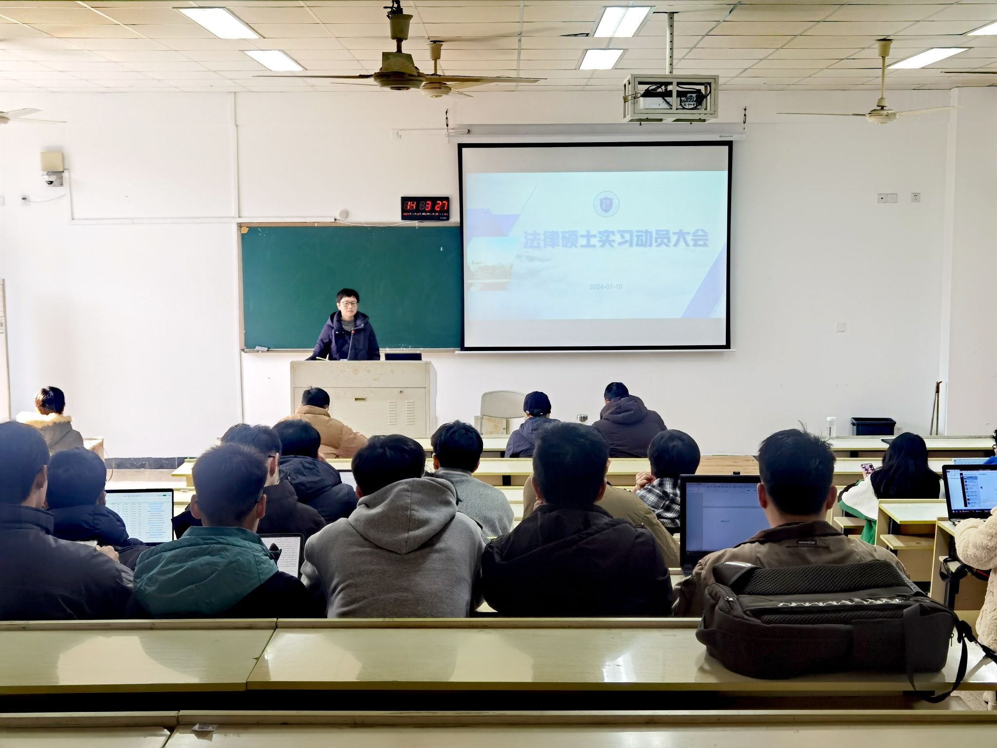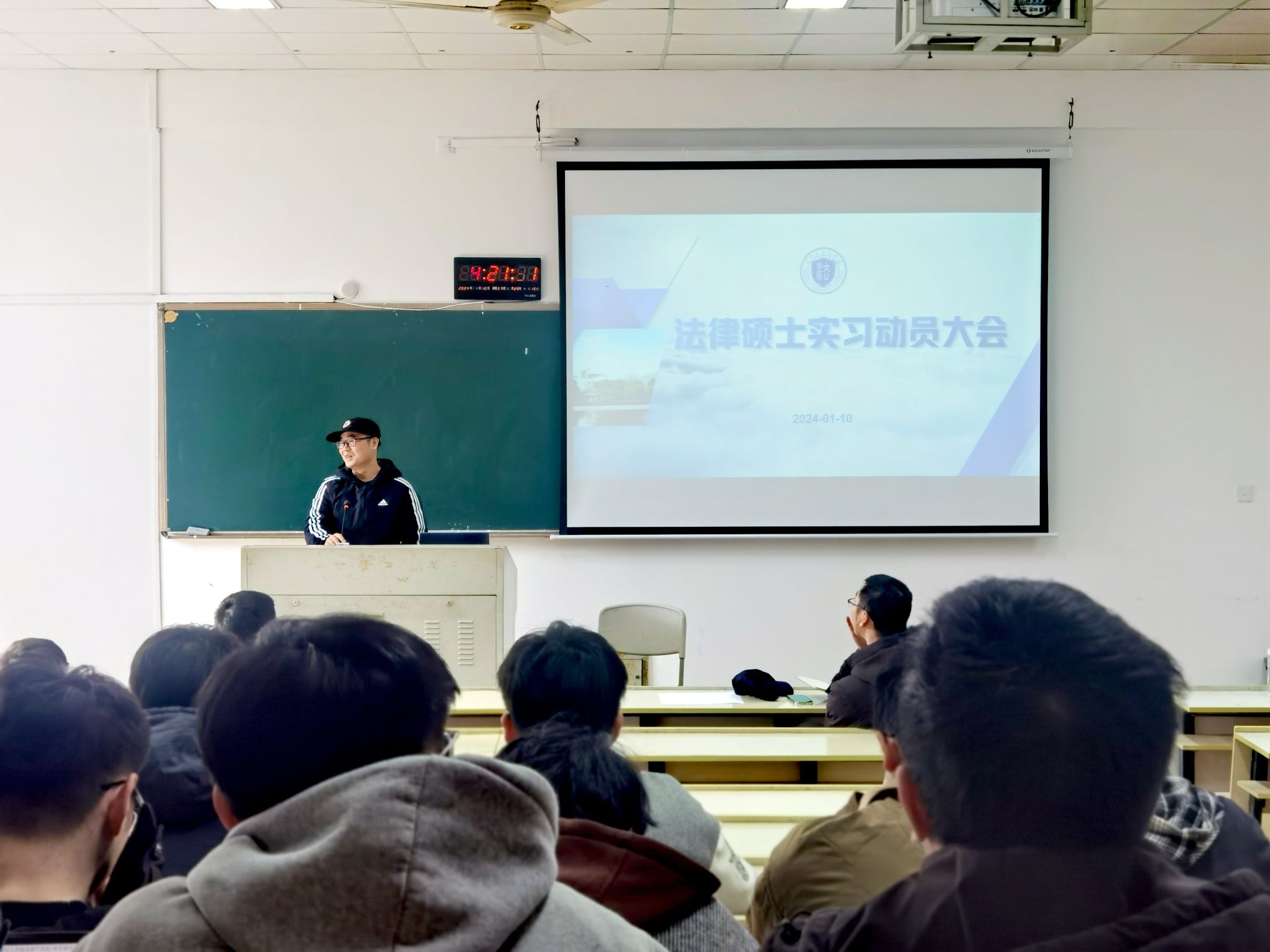 2024年1月10日下午,麻将胡了试玩 在北校区2号楼201召开2022级法律硕士实习动员大会,会议由麻将胡了试玩 副院长周一颜主持,法律硕士学位点负责人肖磊教授、麻将胡了试玩 各实践基地联络员、教学科、学生科及22级法律硕士研究生出席了本次动员大会。
