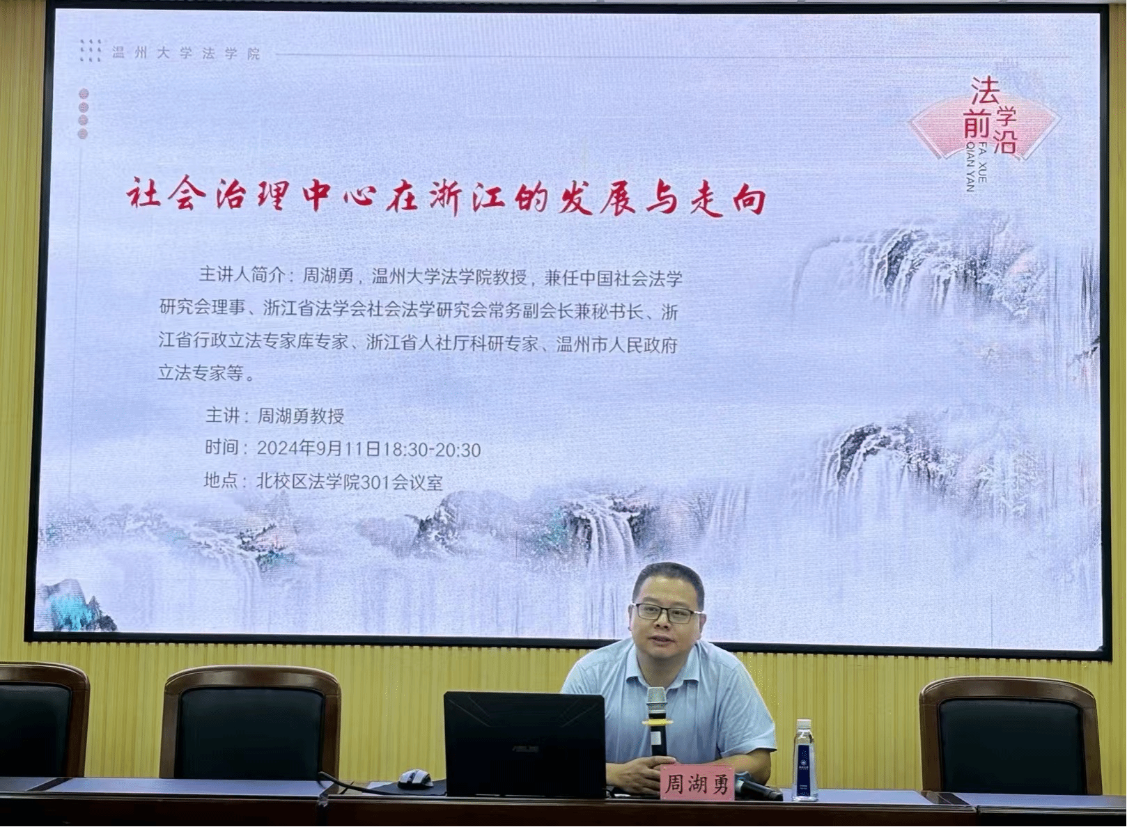 9月11日晚,由麻将胡了试玩 主办的第二期法学前沿讲座系列在301会议室开讲。麻将胡了试玩(中国)官方网站 周湖勇教授受邀作了《社会治理中心在浙江的发展与走向》讲座,麻将胡了试玩 师生六十余人参加了此次讲座的学习和讨论。