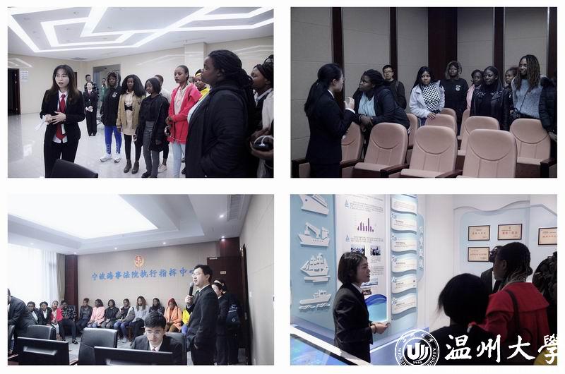 在孔主任的精心安排下,宁波海事法院年轻干警姚妮娜领衔的翻译团队带领国际学生先后参观了诉讼服务中心、指挥中心和院史馆。工作人员全程用英文讲解,热情而且专业,并耐心地回答了学生们提出的各种问题,使学生们有机会直观、全面地感受中国海事审判工作,进一步激发了他们学习法学专业的兴趣。在执行指挥中心,工作人员向学生们展示了船舶“鹰眼”系统和宁波港船舶作业查询系统,学生们对中国海事法院信息化建设赞叹不已。