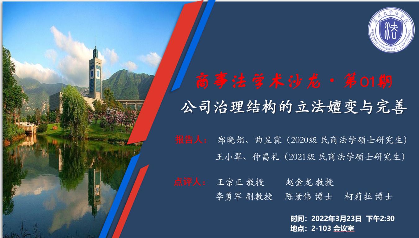 商事法学术沙龙·第01期预告:公司治理结构的立法嬗变与完善