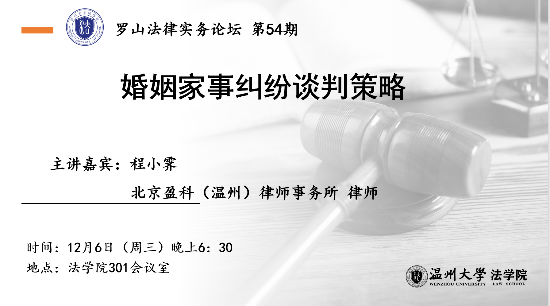 讲座预告丨罗山法律实务论坛 第54期:婚姻家事纠纷谈判策略