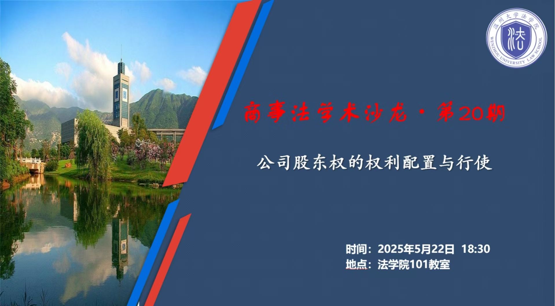 讲座预告丨商事法学术沙龙·第20期 公司股东权的权利配置与行使