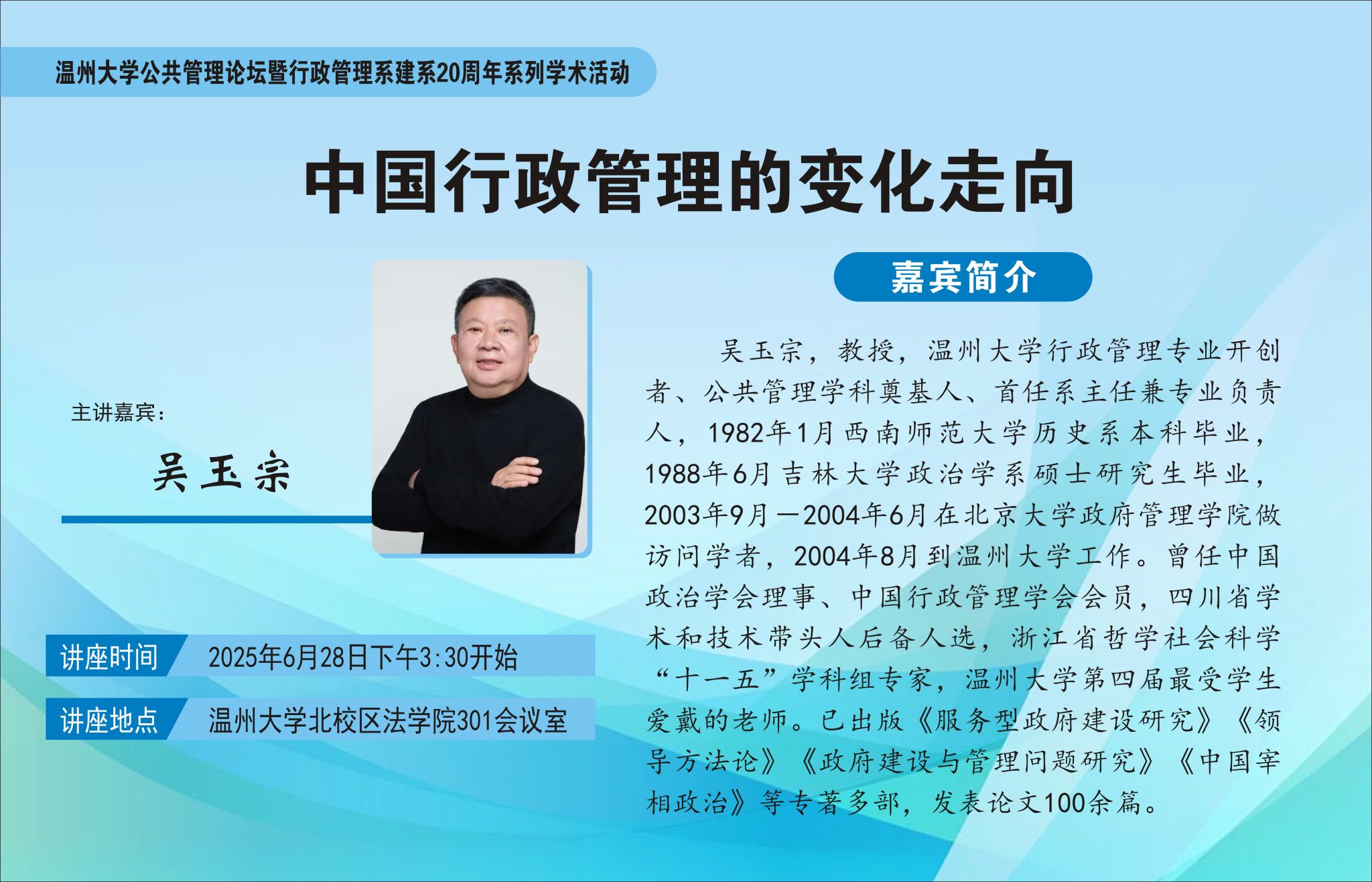 温州大学公共管理论坛暨行政管理系建系20周年系列学术活动预告|中国行政管理的变化走向
