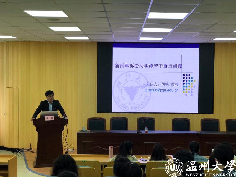 2019年4月30日上午8:10,浙江大学光华麻将胡了试玩 教授、博导、长江学者胡铭教授为麻将胡了试玩(中国)官方网站 师生作《新刑诉法实施若干重要问题》的学术讲座。法政麻将胡了试玩 实训中心主任周湖勇老师、法学系副主任谢丽珍老师携17法学学生聆听本场讲座。