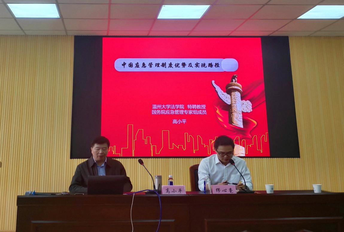 在讲座中,高小平教授主要围绕“突发事件新特点与制度创新”、“中国应急管理制度优势”、“应急管理制度优势实现路径”三个方面进行了详细的分析和讲解。