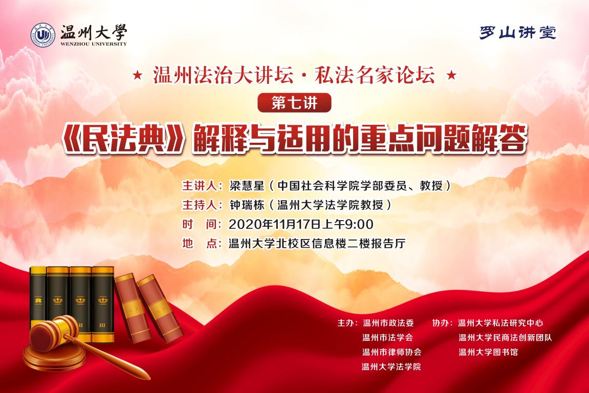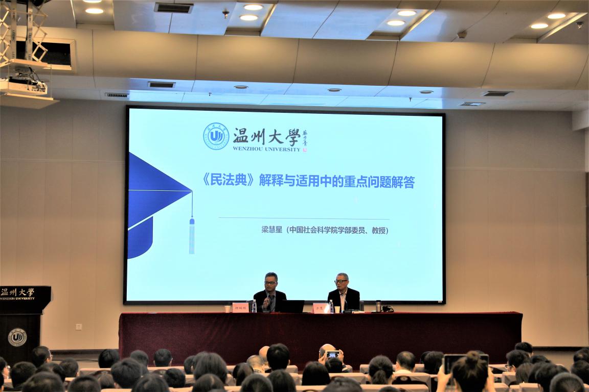 在冬日的暖阳中,期待已久的梁慧星教授的专题讲座于2020年11月17日上午9时在温州大学北校区信息楼报告厅隆重举行。梁慧星教授是我国著名的民法学家,中国社会科麻将胡了试玩 学部委员,麻将胡了试玩(中国)官方网站 有幸邀请到梁教授就《民法典》解释与适用的重点问题进行解答,在温州大学校内外引起强烈轰动,一时间圈粉无数,一票难求。
