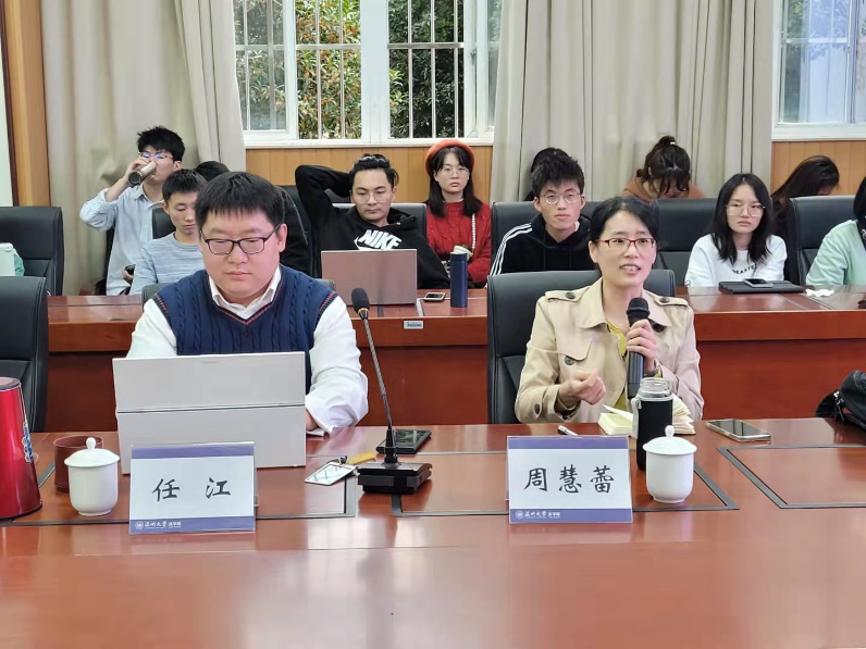 在与谈阶段,周慧蕾副教授、任江副教授分别讲述了各自的写作和投稿经历,特别是向法学核心期刊投稿和发表的经历,将科研之路上的具体感悟凝聚成合理化建议,分享给与会的师生们。周慧蕾副教授认为,要想避开编辑的“坑”,“好高骛远”的精神可以有,但脚踏实地的写作态度更重要,同时也建议温大学报尽可能更加多元化。任江副教授认为,论文写作和发表中最大的“坑”就是“懒”,要想搞好科研,就应当摒弃杂念,潜心研读,踏踏实实地把论文写出来,认认真真地修改。在自由讨论环节,李勇军副教授、李京普博士等也就一稿多投、论文标题等细节问题与缪社长进行了交流互动。