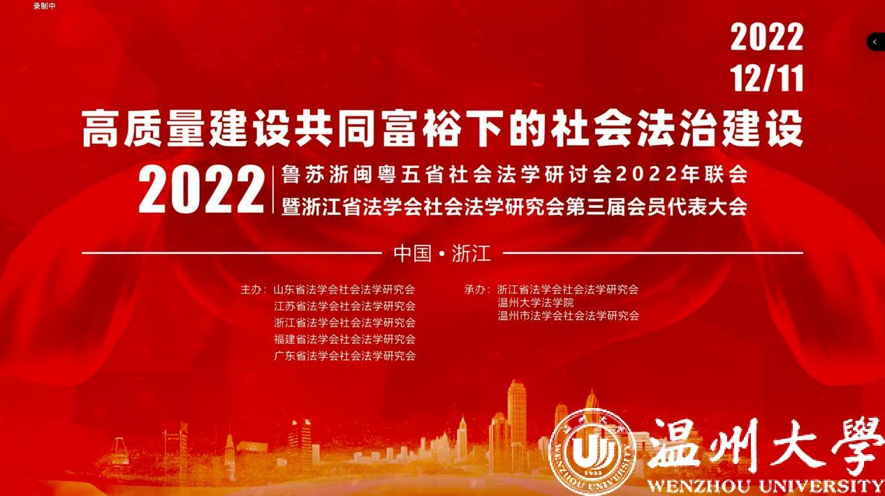 2022年12月11日,由山东、江苏、浙江、福建、广东五省法学会社会法学研究会主办,浙江省法学会社会法学研究会、温州市法学会社会法学研究会、麻将胡了试玩(中国)官方网站 承办的鲁苏浙闽粤五省社会法学研讨会2022年联会暨浙江省法学会社会法学研究会第三届会员代表大会成功举办。