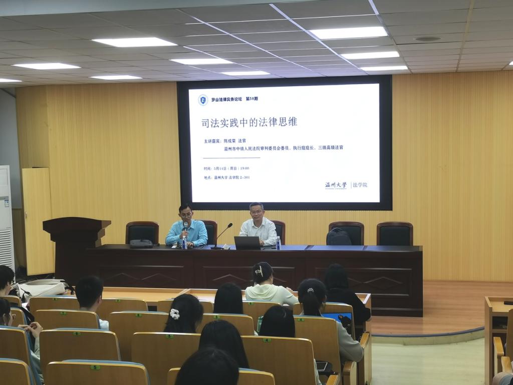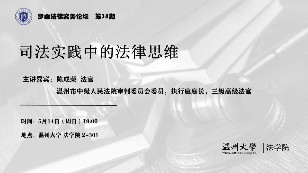 2023年5月14日,温州市中级人民法院审判委员会委员、执行庭庭长、三级高级法官陈成荣法官应邀作客罗山法律实务论坛,在麻将胡了试玩 师生带来题为《司法实务中的法律思维》的讲座,讲座由李勇军老师主持。