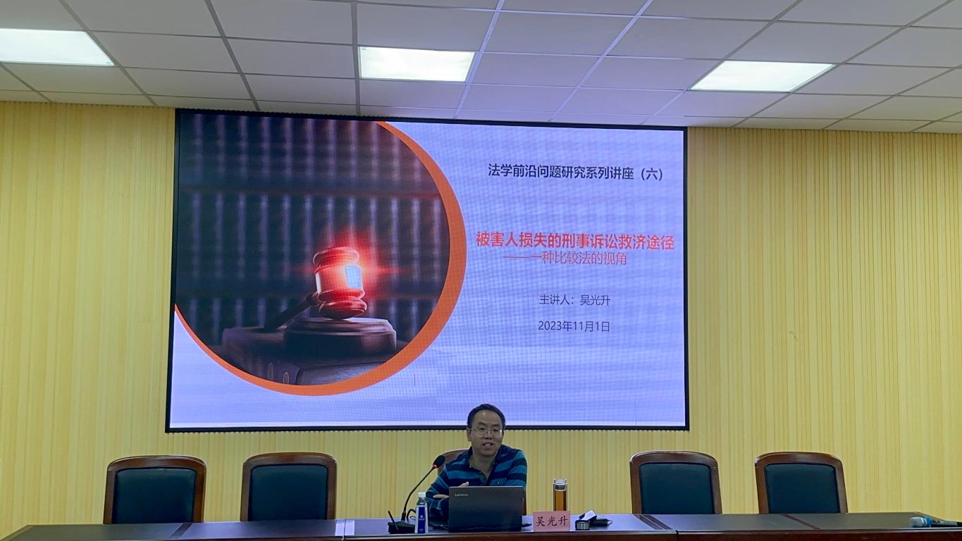 11月1日晚,麻将胡了试玩 邀请吴光升教授于301会议室为同学们开展题为《被害人损失的刑事诉讼救济途径——一种比较法的视角》的讲座。