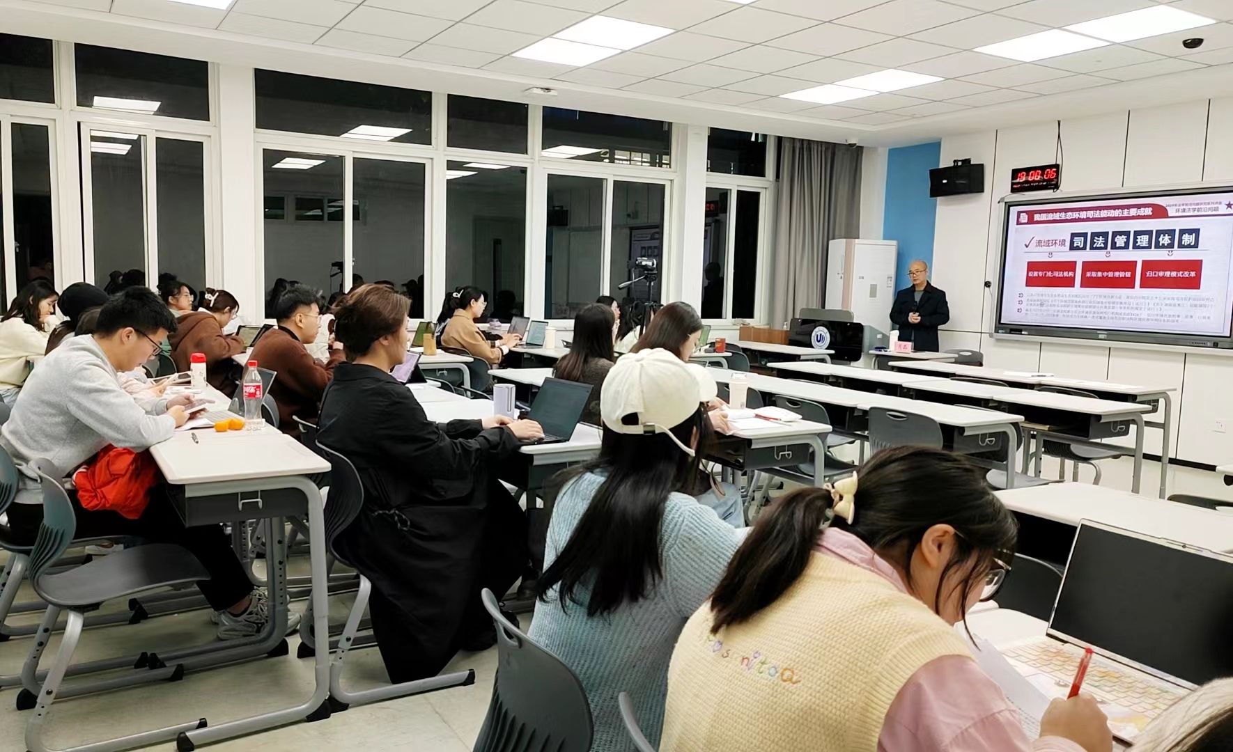 11月24日晚,法学前沿问题研究系列讲座第八讲开讲,麻将胡了试玩 肖磊教授为同学们带来主题为《司法能动主义下流域生态环境司法保护之发展方向》的讲座。