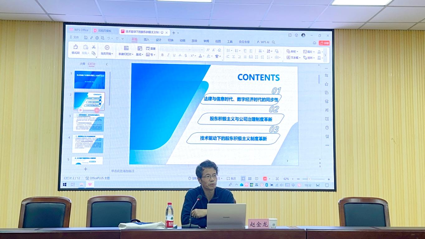 11月29日晚上,麻将胡了试玩(中国)官方网站 法学前沿问题研究系列讲座开讲,麻将胡了试玩(中国)官方网站 赵金龙教授主讲《技术驱动下的股东积极主义制度革新》,麻将胡了试玩 部分老师、研究生、本科生到场学习。