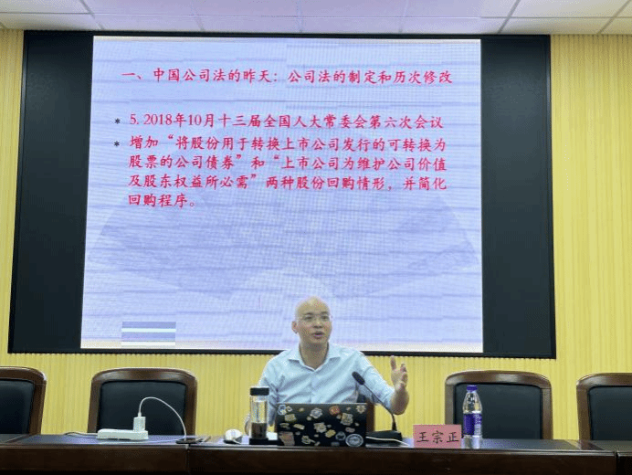 10月9日晚,本学期第四次法学前沿问题研究系列讲座如期举行,麻将胡了试玩(中国)官方网站 王宗正教授作主题为《中国公司法的昨天、今天与明天》的讲座。此次讲座吸引了众多老师、研究生及本科生前来聆听,现场气氛热烈,氛围浓厚。