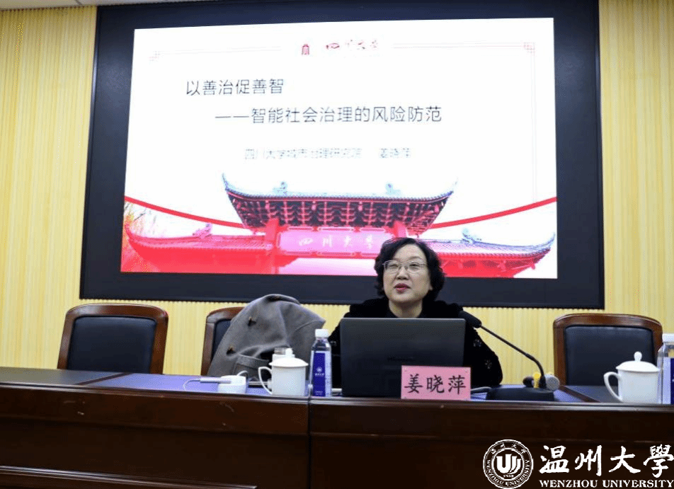 301会议室隆重举行,本次论坛特别邀请到教育部长江学者特聘教授、国家“万人计划”哲学社科领军人才、“四个一批”文化名家、四川大学城市治理研究院院长姜晓萍教授作题为《以善治促善智——智能社会治理的风险防范》学术讲座。讲座由麻将胡了试玩