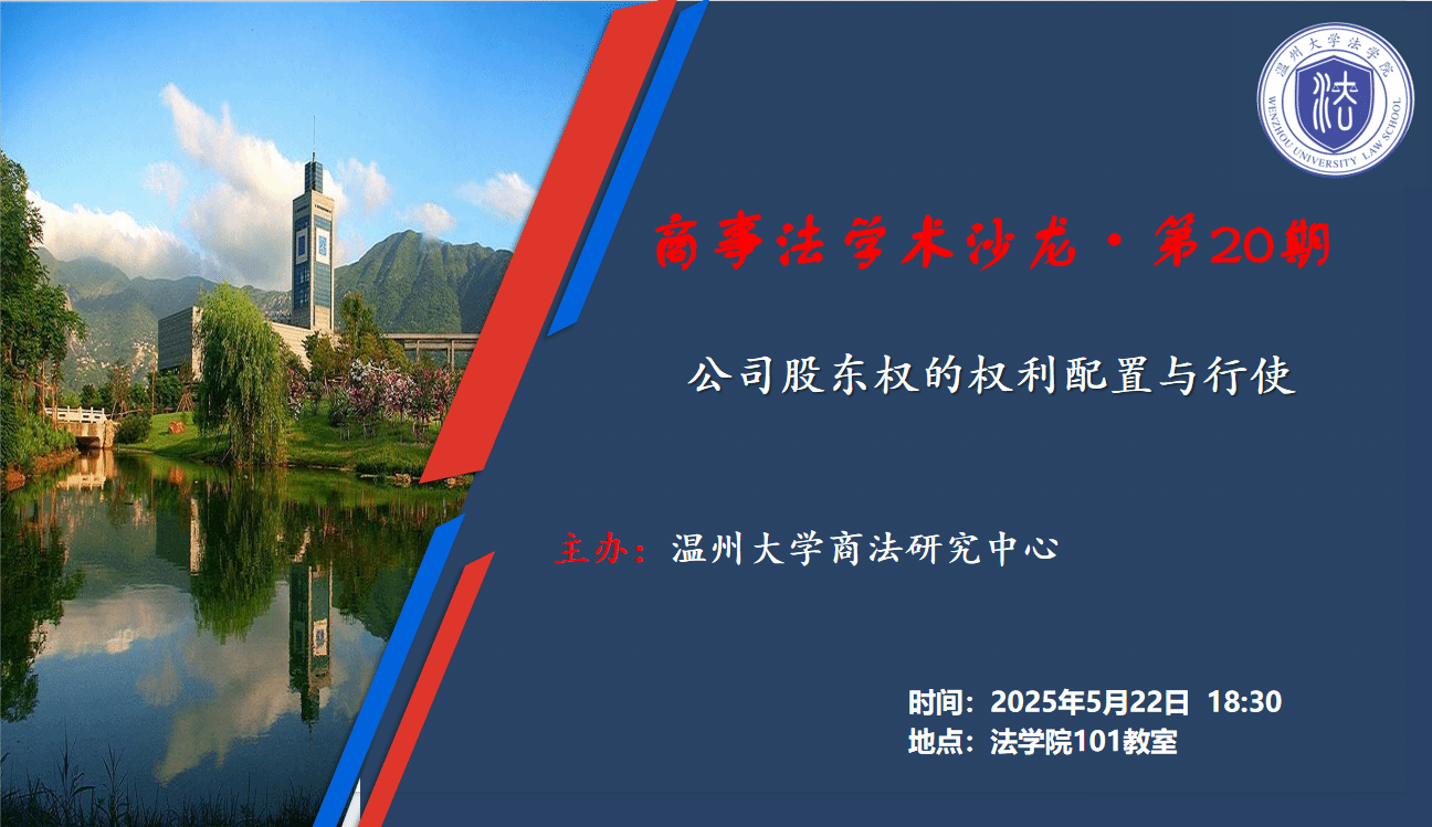5月22日晚,“商事法学术沙龙”第20期在麻将胡了试玩 101教室进行,本次沙龙的主题为“公司股东权的权利配置与行使”,2022级法律硕士研究生金铭,2023级法学硕士研究生杨珍妮、朱培凡、王文、张颖、赵佳琳、王予笛、郑大为作为汇报人就该主题进行分享,2024级部分硕士研究生和2022级本科生参加讨论,李勇军教授主持本次沙龙并作为点评人参与本次沙龙活动。
