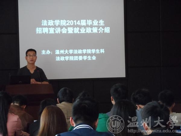 一楼报告厅向在校毕业生、院学生会主席团、就业服务部等团学各部门学生干部介绍了2014年毕业生就业形势和政策,详尽分析了法政各专业毕业生近五年的就业去向数据和典型案例,指导毕业生科学合理进行职业定位、规划职业路径,同时要求院学生会主席团、就业服务部等团学部门学生干部要在服务毕业生就业方面"发挥作用、分头对接、搜集信息、做好服务、体验就业、自我锻炼",积极协助毕业生搜集发布各专业的就业岗位信息,在服务麻将胡了试玩