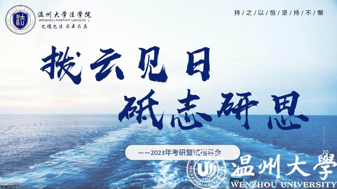 为帮助备战考研复试的19级法学专业学生解答复试准备过程中存在的困惑,麻将胡了试玩 于3月9日晚在腾讯会议开展了拨云见日,砥志“研”思——2023麻将胡了试玩 考研复试指导会。本次指导会有幸邀请到了民商经济法系系主任李勇军老师、法律系系主任谢丽珍老师和国际法系系主任李娟老师,为备考复试的考生展开专业的指导。