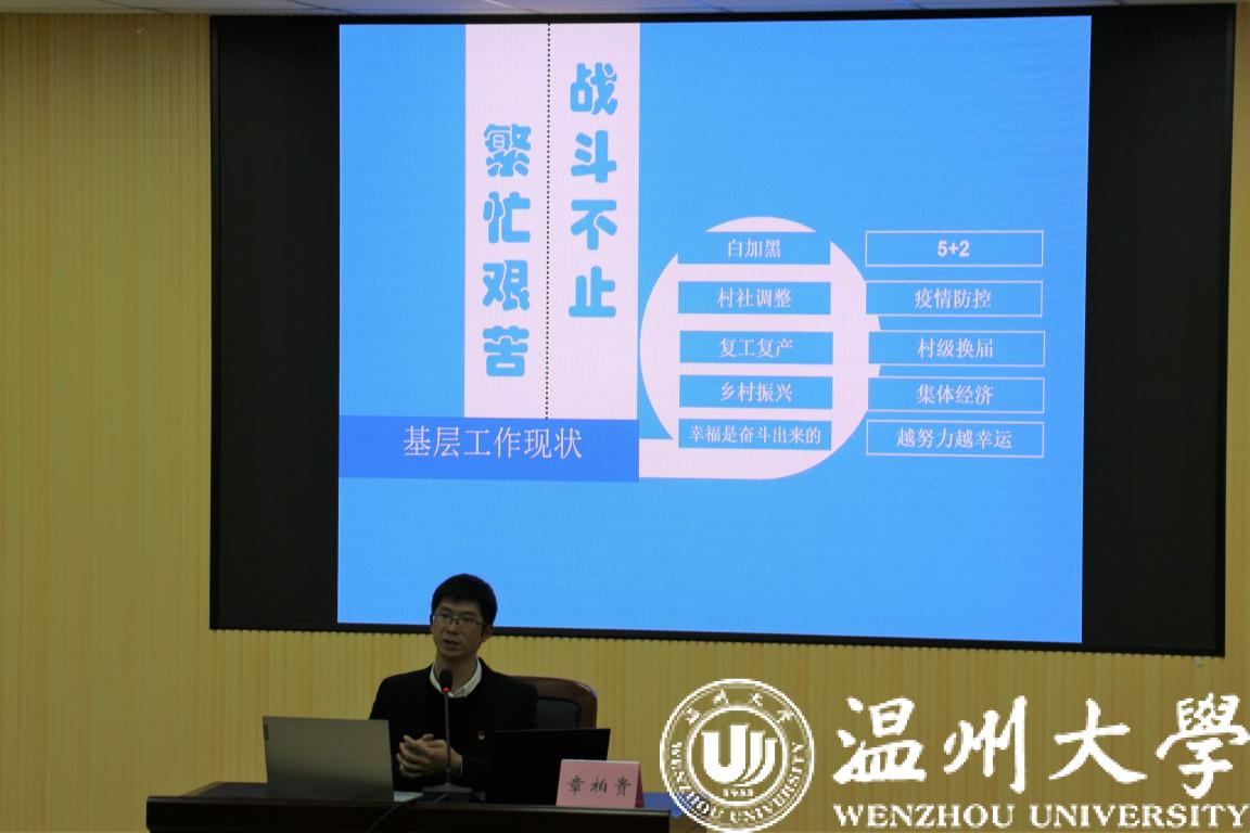 为帮助同学们解答考公困惑,12月30日,麻将胡了试玩 在北2-301举办了职业成长与公考心得分享会。本次分享会邀请了获得“省优秀书记”称号的章柏贵书记与同学们分享基层工作经历与公考备考心得。