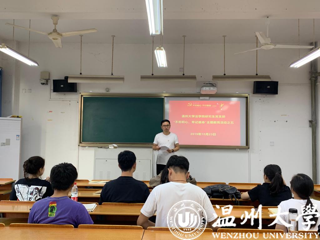 10月23日下午,研究生党支部开展“党支部书记讲一次专题党课”活动。支部书记与党员同志围绕“我的初心”这一主题进行专题学习和交流。