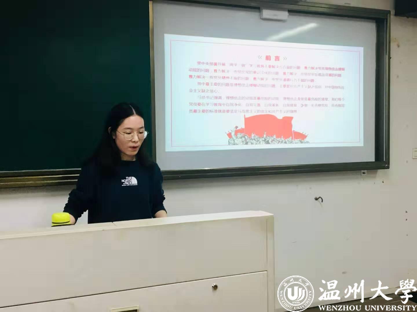本次活动的主讲人是麻将胡了试玩 16行政管理专业的骆红肖。首先,她分别从马克思主义科学理论、合格党员和中华民族伟大复兴这三个角度阐述了何为中国共产党党员的理想信念,中国共产党党员为什么要坚定这一理想信念。马克思主义作为科学理论,指导一代又一代的中国共产党人在坚定共产主义信仰的前提下,努力为实现国家富强、民族振兴、人民幸福这一伟大理想而奋斗。