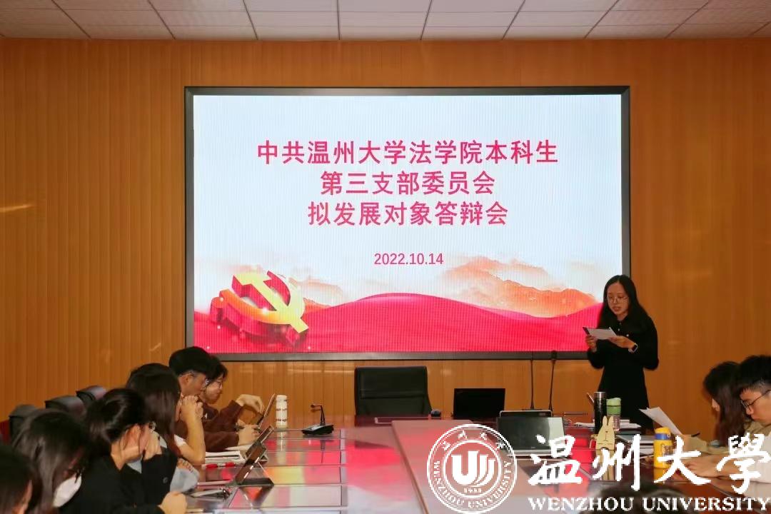 为规范学生党员发展工作,确保党员发展质量,加强学生党支部队伍的建设,10月14日晚,麻将胡了试玩 本科生各党支部分别在301教室、210教室、103教室开展拟发展对象答辩会。麻将胡了试玩 本科生第一党支部书记黄依瑶老师、第二党支部书记谢亭立老师、第三党支部书记黄素素老师、党支部全体党员以及拟发展对象参加了此次大会。
