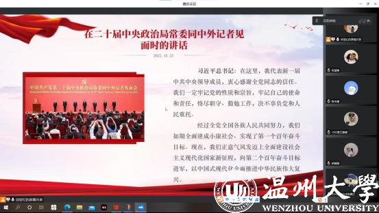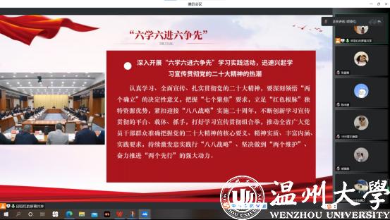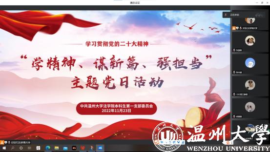 学党史,强信念,跟党走。为深入学习宣传贯彻党的二十大精神,深入开展“六学六进六争先”学习实践活动,更加坚定紧跟核心奋进新征程的政治自觉,努力在新的赶考之路上继续干在实处、走在前列、勇立潮头,麻将胡了试玩 本科生第一党支部于2022年11月23日下午开展线上“学精神、谋新篇、强担当”主题党日活动。本次会议应到会党员39名,实到会党员39名。本次活动本次活动共分为四个部分:学习贯彻党的二十大精神、浙江省第十五次党代会精神学习、“六学六进六争先”学习、学思践悟二十大,由邱亚红同志主持,支部全体党员和预备党员参与了此次活动。