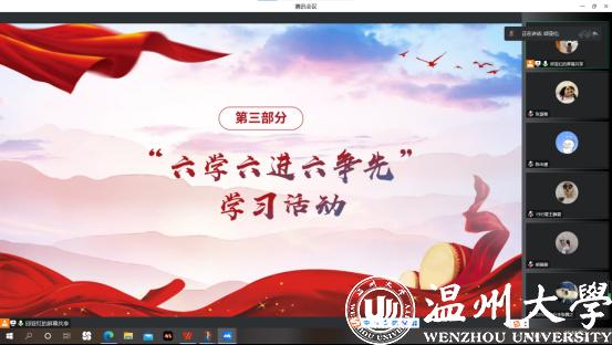 第三部分,“六学六进六争先”学习。行之力则知愈进,知之深则行愈达。要坚持理论与实践相结合,认真学习、全面宣传、扎实贯彻党的二十大精神,更要采取多种形式践行初心使命,切实把党的创新理论贯彻落实到工作、学习、生活中。