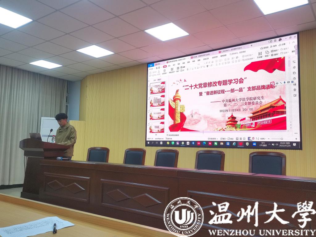 为学习贯彻党的二十大精神,深刻学习和领会党章修正案的重要内容与重要意义,向优秀党员同志学习,麻将胡了试玩 研究生第一、二、三党支部于11月24日晚上组织开展了“学精神、谋新篇、强担当”党日活动。本期活动由研究生第一党支部支部书记丁泽志同志主持,支部全体党员参加。