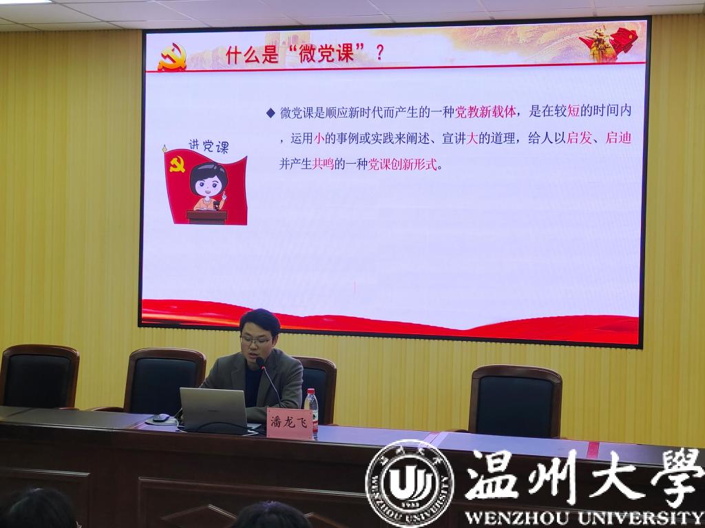 11月24日晚,电气与电子工程麻将胡了试玩 潘龙飞老师以“如何讲好一堂微党课”为主题开展专题讲座。潘龙飞老师以“什么是微党课”为切入点,指出微党课是顺应新时代而产生的一种党教新载体,是在较短的时间内,运用小的事例或实践来阐述、宣讲大的道理,给人以启发、启迪并产生共鸣的一种党课创新形式。他用丰富的案例讲解了“微党课”的内容组织形式,阐述了“微党课”的细节处理问题。