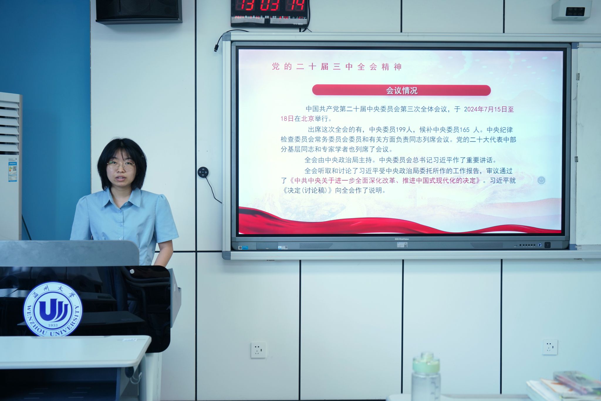 习近平总书记指出,学习好贯彻好党的二十届三中全会精神是当前和今后一个时期全党全国的一项重大政治任务,中央和国家机关是贯彻落实党中央决策部署的“最初一公里”,要在学习宣传贯彻全会精神上当好排头兵。本次专题学习会能够帮助全体学生党员更好地深入了解党的改革发展政策,认真学习党的二十届三中全会精神,深刻领悟全会的重大意义和实践要求。我们要始终坚持以习近平总书记为核心的党中央全面领导,坚定不移朝着全会指引的方向迎难而上,书写新时代中国改革开放现代化的新篇章。