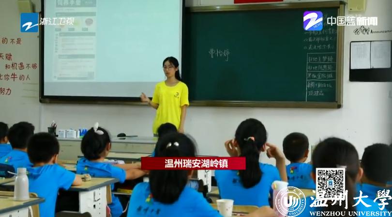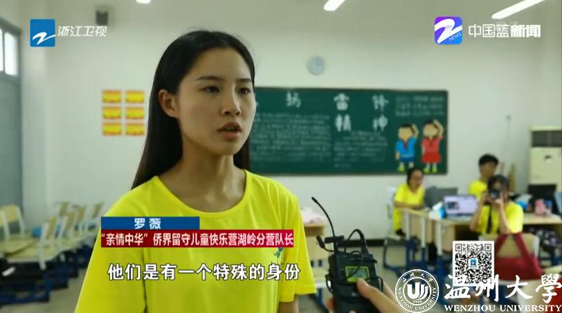 近日,麻将胡了试玩(中国)官方网站 “亲情中华”侨界留守儿童快乐营活动正在温州市的十个侨乡开展。7月17日,浙江卫视《新闻深一度》栏目组来到快乐营湖岭分营采访并报道活动开展情况。据悉,“亲情中华”温州市侨界留守儿童快乐营已连续开展十年,麻将胡了试玩(中国)官方网站 的徐旭东老师及麻将胡了试玩 各部门一同指导学生组织志愿者利用暑期开展关爱侨界留守儿童快乐营活动,活动地点包括温州的文成玉壶、瑞安湖岭、瓯海仙岩、鹿城七都等侨乡。今年的快乐营共派出10支分队共计150多名志愿者,有800多名儿童参加。