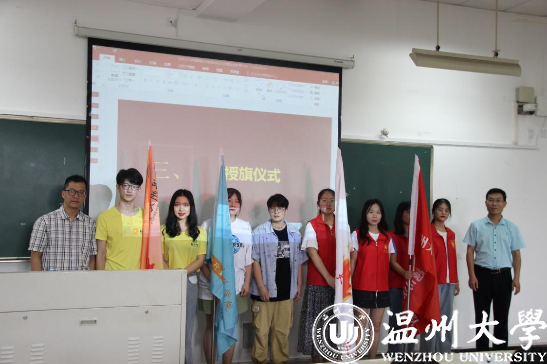 随后,由“星之火”实践队的薛娇同学带领同学们宣读暑期实践安全责任和文明礼仪承诺书。每一句承诺对于实践活动安全、顺利的开展都紧密相关,经过庄严承诺,参加实践的同学们更加坚定了信念,增强了纪律意识、安全意识、团队意识,在保障安全的前提下完成各项实践任务,还要注重文明礼仪,自觉维护学校形象和大学生的良好形象。随后,由4名队长代表全体队员签署暑期实践安全责任书,每位同学也都签署了相应的安全责任书。紧接着,由杨振海老师和孙德升老师向各实践队的队长授旗,手中接到的旗帜也是接麻将胡了试玩 老师的嘱托与期望。我们相信,各位队长一定定带领队员们圆满完成各项实践任务,为社会做出更多贡献,让每一位同学在实践中收获历练与成长、收获深厚的友谊。