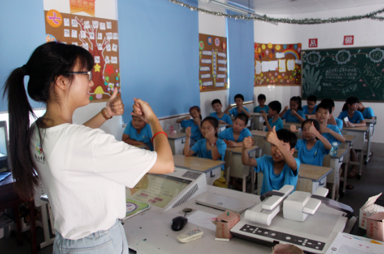 没有声音,却节奏分明;没有表达,却深入人心。这就是手语,只需轻轻浅浅出现,便要深深刻刻印入脑海,成为这世界最珍贵的美好。它是一种跨越种族的语言,抛却一切华丽的辞藻,成为彼此心与心的相贴,爱与爱的交流。所学的手语和营员们脸上的笑靥、眼里满溢的笑意一样,在志愿者的心上刻画下无数道印记。快乐营的志愿者们将不仅仅陪这群孩子度过七月酷暑的21天,因为在他们身上所留下的爱与快乐将陪伴他们一生,因为始终坚信这些孩子终将学会如何学习爱、表达爱、传递爱。