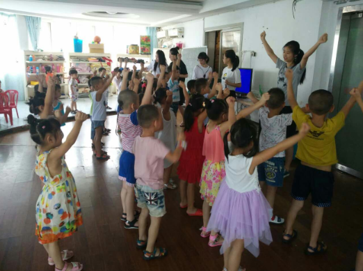 在音乐舞蹈课上,在志愿者一遍又一遍地领唱、领舞下,小朋友们唱出了清脆悦耳的歌声,挥动着稚嫩的小手小脚,之前的害羞与胆怯消失得无影无踪,课堂上洋溢着童真的美好。