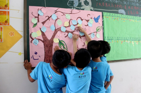 心愿树上大部分孩子的心愿都是希望爸爸妈妈早一点回来。所有志愿者看完后都恨不得化身为孩子们的父母,给他们一个久违的温暖的拥抱。孩子们总是喜欢缠着志愿者们,让他们抱着,背着,也许他们正是在以这种方式,感受着"父母"的爱。