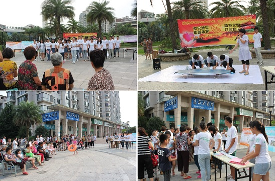 为增强公众的安全意识,大力宣传防灾减灾知识,2015年7月14日下午,在温州市民政局的指导下,瓯海区民政局联合温州大学"梦夕阳"防灾减灾志愿者分队,在社区山水名都小区举办了一场以 "防灾减灾"为主题的知识宣传活动,同时在"微舞台"举行了一场防灾减灾的知识宣传汇演,现场吸引了几百名观众前来观看。