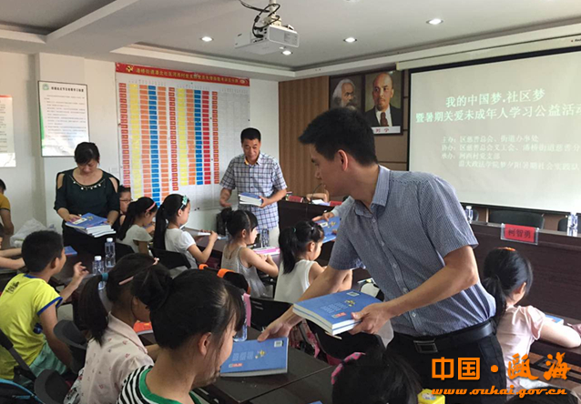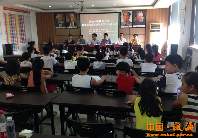 为丰富青少年暑期生活,让孩子们暑假中不仅只有学习,还有愉快的精神文化生活,过一个不一样的暑假,区下派指导员吴海萍主动沟通联系区慈善总会及义工分会,联合潘桥街道、温大政麻将胡了试玩 梦夕阳暑期社会实践队,在横仙河社区河西村民中心开展"我的中国梦.社区梦"暨暑期关爱未成年人学习公益活动。