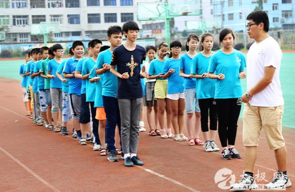 在快乐营"最高境界——静齐快"的口令声中,孩子们迅速整齐有序地排成队列来到操场上。跟随着快乐营队员地演示,孩子们有板有眼地认真学习着一个个太极招式。队员耐心地为每一个孩子进行动作的纠正,孩子们之间也互相帮助,互相演示着,漆黑的眼眸中透露出对学会太极拳的渴望。有的孩子主动要求队员把他教得更好点,他悄悄告诉队员,因为他想学好了之后回家教给爷爷奶奶。队员们听到孩子们对家长的默默关怀与感恩,在教授太极时变得更加有动力。
