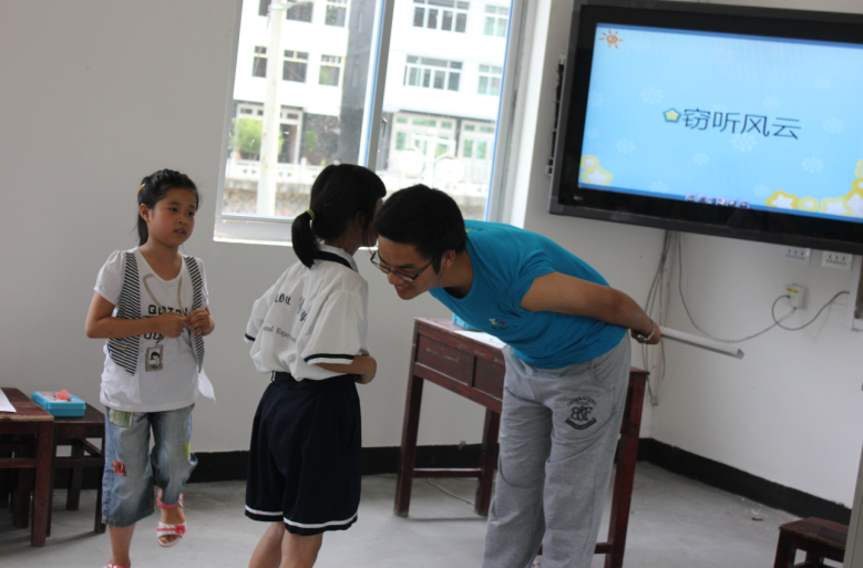 昨天,经过志愿者们一晚上的辛苦工作,东溪小学二楼重修的两间多媒体教室终于向同学们正式开放。之前由于放假重整等原因,我们常规上课只有两间教室,一间舞蹈教室作为多媒体教室,大小班轮流上课。而新教室的开放,无疑为我们的教学课程提供了新的内容。今天下午,我们特地以新教室作为活动场所,进行了一次有趣的素质拓展培训。培训主题是破冰之旅,目的是为了培养学生的团队意识。培训的内容包括四项:你追我赶、团队设计、窃听风云、无敌风火轮。其中,最受孩子们喜爱的便是无敌风火轮的游戏,老师将学生分为四组,各组小营员们一起动手配合,用报纸制作风火轮,在嘹亮的口号声中一齐冲向终点。游戏结束后,小组成员和辅助老师坐在一起讨论经验,并就此次活动发表自己的感受。最后,游戏并没有胜负之分,而是在孩子们惩罚老师唱歌的欢笑中结束了这次活动。