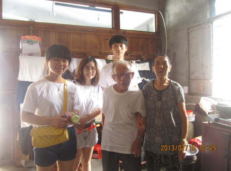 敬老院位于山脚下,空气清新,幽静怡人,室内干净整洁。老人们有的在门口坐着乘凉,有的互相聊天,有的在周边散步,生活安静和谐。当队员们用温州话跟老人们交谈,了解他们眼中对于温州经济变化以及生活变迁的感受时,老人们纷纷微笑着侃侃而谈,向我们吐露了他们的心声。从他们的口中得知,这里大部分老人的子女都已经出国十几年,在国外艰苦奋斗之后都小有成就。而如今老人们也都过上了清闲安逸的生活,对比以前的艰苦,他们都觉得时代的变迁带来了生活的富足,十分满意!