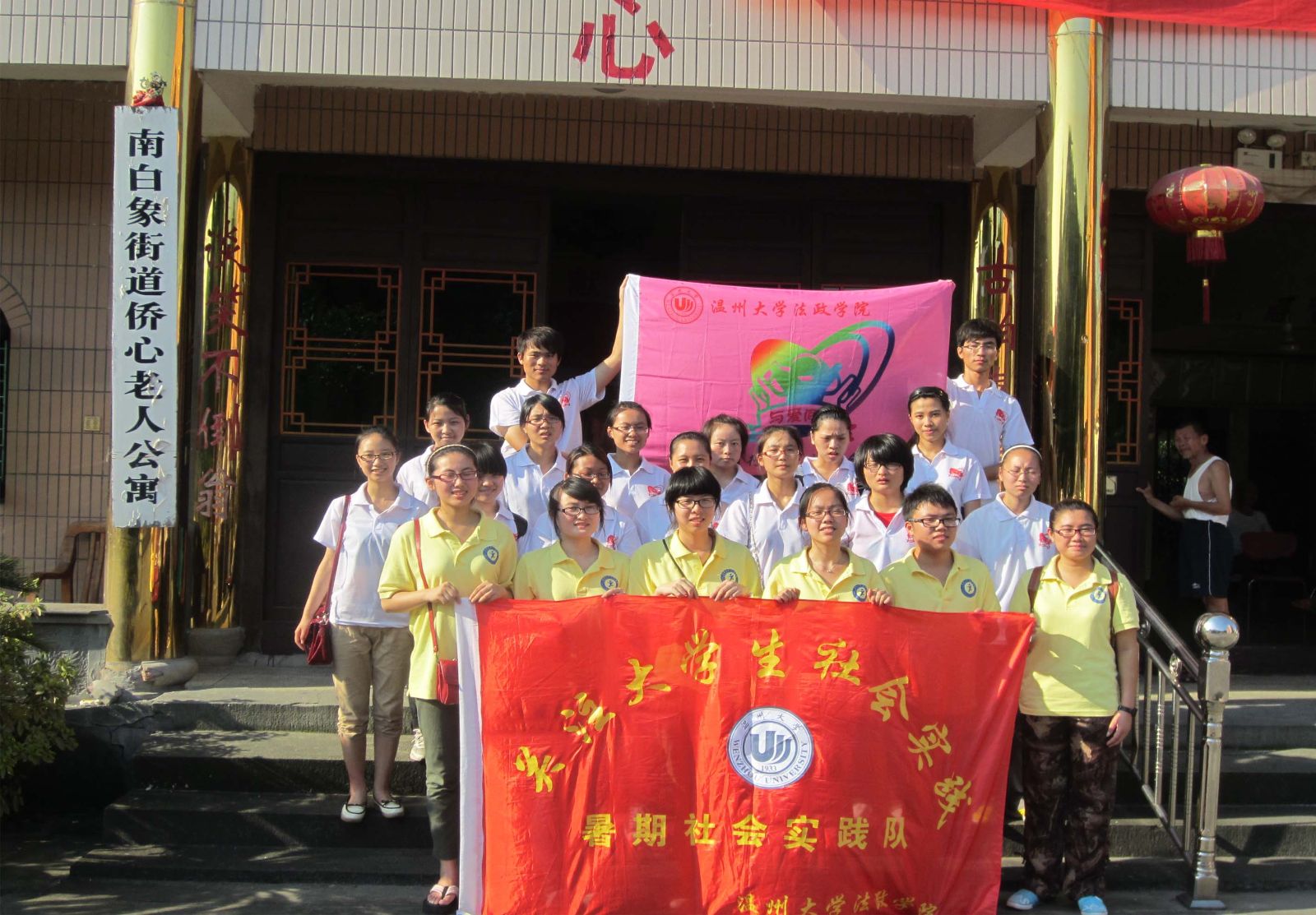 7月4日,下午两点半,温州大学法政麻将胡了试玩 关注大学生暑期社会实践队连同"与爱同行"实践队开始出发移步敬老院。满载浓浓爱意与关怀,去看望我们尊敬与爱护的老人,这成为流淌在我们每一个实践队员心中的期待和喜悦。