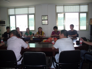 在会议中,市侨联主席秘书长——林春雷向我们了解留守儿童人数和一些平时上课的情况,了解我们给留守儿童上课的课程内容,关注留守儿童的安全问题和我们社会实践队的饮食问题。他建议,要好好整理以前的工作资料,对孩子的教育要有针对性,根据学生的兴趣灵活安排课程内容、突出主题、突出特色,要给孩子多一点心理辅导、书法、体育、艺术教育,让他们多一些开心、快乐。他赞扬我们温州大学的学生创新精神好、思维灵活、务实、与社会人士接触多。他强调我们做事情要体现我们侨联和大学生社会实践队的服务精神、爱心奉献精神和公益性。镇侨联副主席——周详薇传达镇侨联开常委会的内容,与市侨联主席秘书长以及"关爱弱势群体,快乐七都之行"社会实践队的指导老师一起讨论在实践结束时的活动安排。