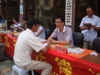 上午,同学们和司法局的相关人员一起在霓屿乡布袋岙村委会的门口设点进行法律咨询活动。现场设有法律咨询、法律援助、社区矫正、代写文书等多项法律援助内容。同时,现场进行的法律知识有奖竞答吸引了大批村民地热情参与。在此期间,同学们向村民分发了法律宣传手册和宣传袋,以宣传法律知识。