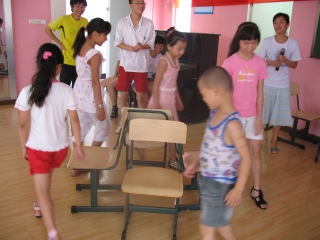上午8:15左右,队员们提前来到实践小学进行歌唱比赛的后补准备,以保证顺利开展歌唱比赛。活动是根据原先分配的四小组进行小组积分制比拼。在耳熟能详的音乐旋律中,孩子们积极参与,打开记忆的宝库来竞猜歌名。然后,答对歌名的小组成员需集体起立,面对全体同学演唱该歌曲。然后,前三名的小组获得了队员们亲自制作的奖状。接着,"抢凳子"游戏开始了。有的孩子屡次上场,而另一些胆怯的孩子也在队员的耐心开导下参与进来。除此之外,"踩气球"使孩子们热情高涨,教室里气球爆炸的声音宛如鞭炮声响起。值得一提的是上级领导也很关注此次社会实践活动,今天亲临丽岙一小讨论相关事宜。