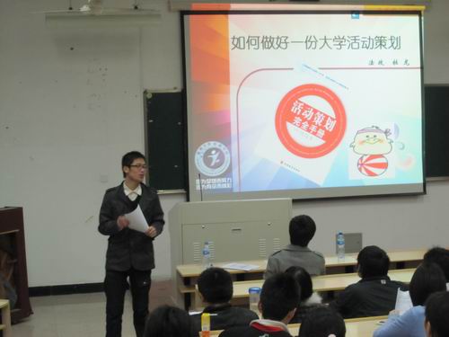首先,杜龙以自己大学三年来的学生干部工作经验,着重介绍了"如何做好一份好的活动策划"。紧接着,王春晓以幽默的谈吐为同学们介绍了自己在担任班长时,班级一路走来展现的班级凝聚力与班级风采。两位学生干部在讲课言辞间,无不体现着身为一名新时代学生干部应尽的责任和义务。