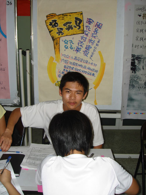 6月15日,温州大学"深化农村改革 服务农村建设"暑期社会实践队参加了共青团温州大学团委举办的2008年温州大学暑期社会实践重点队队员公开现场招聘活动。在招聘现场,本实践队通过海报、宣传单等方式吸引了很多到场招聘的同学的眼球。队组委成员沈元杰、胡恒琦、童淑娟三位同学热情地接待了前来应聘的同学们,并认真仔细地回答了应聘同学提出的问题,现场报名情况火爆。在只有六个招聘名额的情况下却吸引了二十四位同学前来应聘。