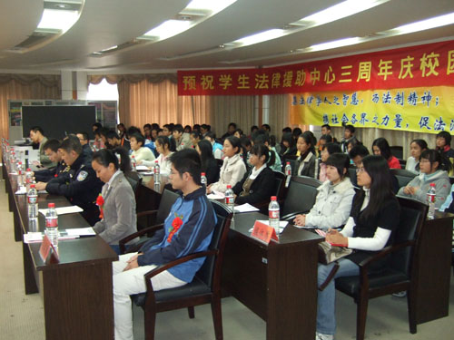 学生法律援助中心在温州大学北校区行政楼331会议室隆重举行以"集法律学人之智慧,扬法制精神;携社会各界之力量,促法治建设"为主题的"法援庆三周年校园三布会"。温州市消费者委员会秘书长蔡伟民、温州市城市管理行政执法局瓯海分局梧田中队队长寥文寿、温州市瓯海区公安分局团委书记陈颖颖、温州市瓯海区梧田高级中学杨老师、温州市瓯海区茶山中学团委书记项东福、温州市瓯海区茶山第二小学校长赵晓海;温州大学法政麻将胡了试玩