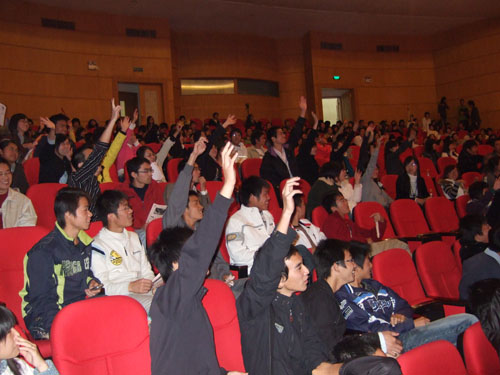 "学习十七大 建和谐法政"主题系列活动之"我们的热血青春"红歌会在南校区音乐厅隆重上演。出席的嘉宾有法政麻将胡了试玩