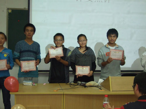 该赛事共分为三个环节。在第一个环节中,全体参赛选手紧紧围绕"学习十七大精神,构建和谐校园"的主题,分别作了精彩生动的演讲。他们用激昂的文字,慷慨地语言,畅谈自己对于十七大精神的理解,赢得了热烈的掌声。而在接下来的两个知识抢答和趣味演讲环节中也充分的展示了同学们良好临场发挥和表演能力。经过激烈的角逐,童淑娟、汤泽利、赵亚琴、王春晓、黄盛亮以及陈娇娇等六位选手最终脱颖而出分获相应奖项。
